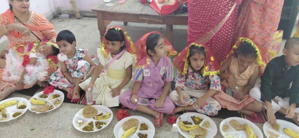 सेजेस लाला लाजपत राय खपरगंज शाला में नवरात्रि की धूम : कन्या पूजन, न्योता भोज और डांडिया में झूमे नन्हें-मुन्ने