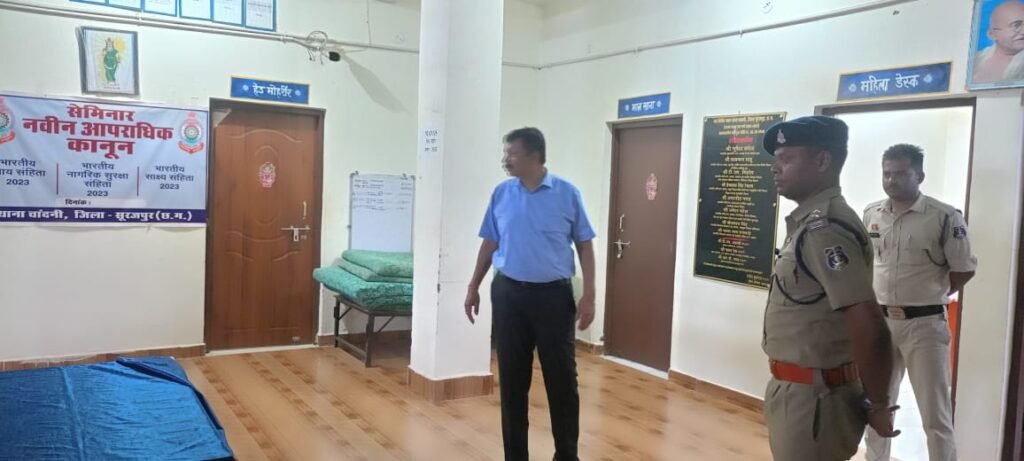 डीआईजी व एसएसपी सूरजपुर अचानक दुरस्थ थाना चांदनी पहुंच रात्रि गश्त को किया चेक।
