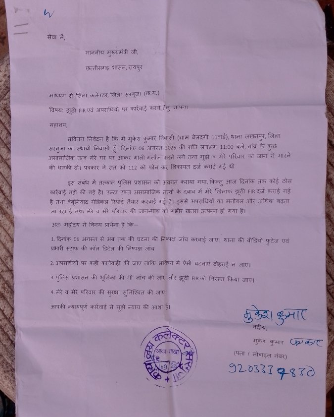 मुकेश कुमार – सरगुजा 🇮🇳 🇮🇳 सरगुजा। लखनपुर थाना क्षेत्र से एक गंभीर मामला सामने आया…