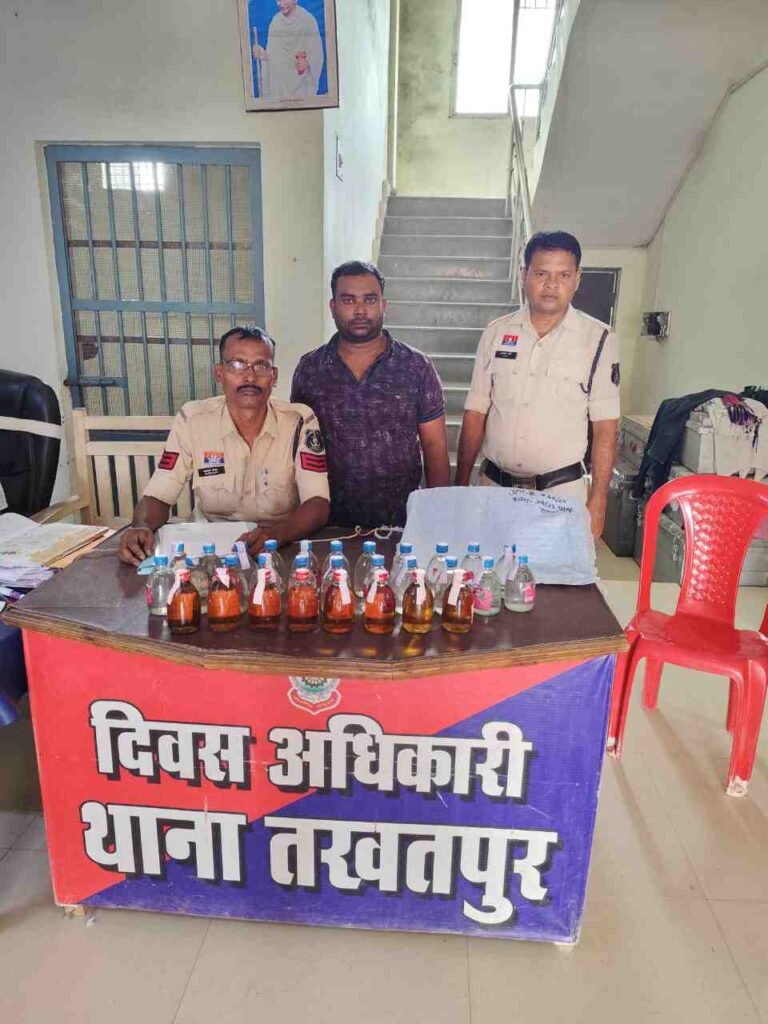 तखतपुर पुलिस की कार्रवाई : अवैध शराब बेचने वाला आरोपी गिरफ्तार, जेल भेजा गया…..।