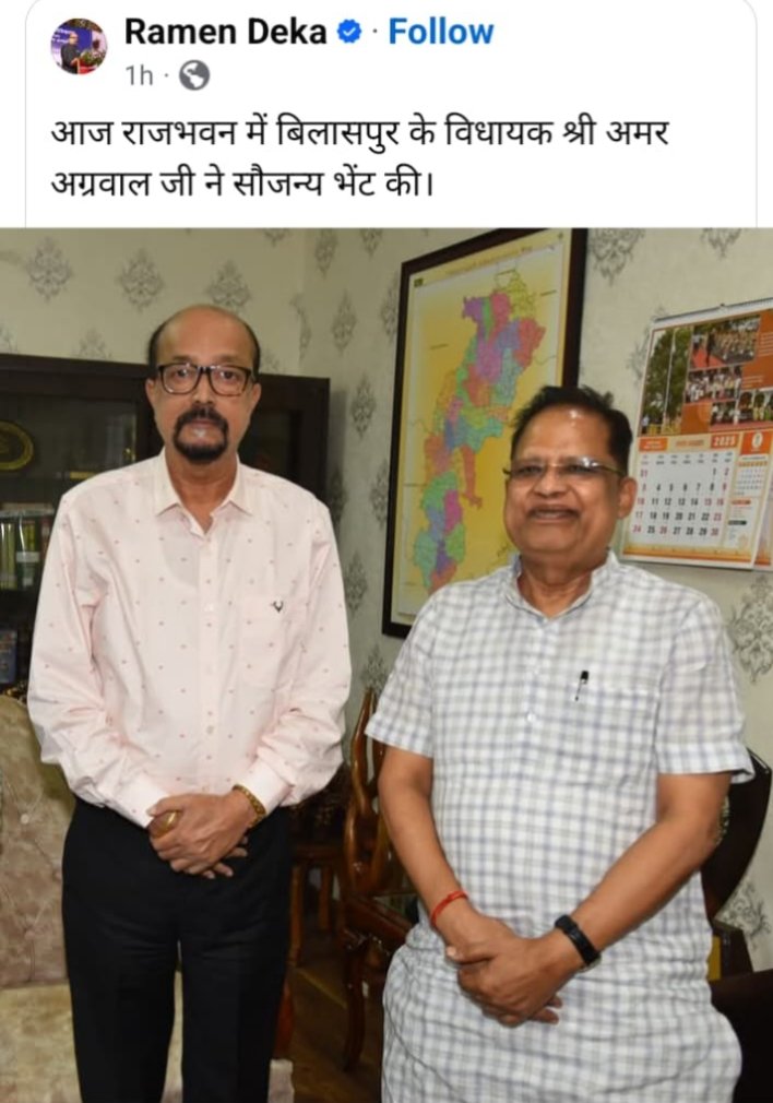 भाजपा विधायक अमर अग्रवाल को राजभवन से फोन आया इसके बाद वह राज्यपाल रामेन डेका से मिलने राजभवन पहुंचे।
