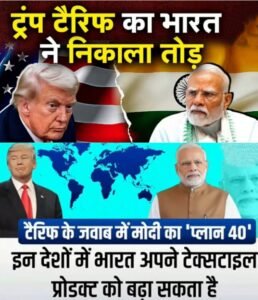 साथियों बात अगर हम प्लान 40 को समझने की करें तो, भारत ने इन चुनौतियों से निपटने के लिए तुरंत रणनीति बनानी शुरू कर दी है। केंद्र सरकार ने प्रभावित सेक्टरों की पहचान की है और उनके लिए क्रेडिट सपोर्ट, टैक्स रिबेट और एक्सपोर्ट सब्सिडी जैसी राहत योजनाएँ तैयार की जा रही हैं। टेक्सटाइल उद्योग के लिए यूरोप, अफ्रीका और लैटिन अमेरिका में नए ग्राहकों की तलाश की जा रही है। फार्मा इंडस्ट्री को रूस, मध्य एशिया और अफ्रीकी देशों में स्वास्थ्य मिशनों के जरिए नए बाजार उपलब्ध कराए जा रहे हैं। आईटी सेक्टर के लिए एशियाई देशों, गल्फ और यूरोप में डिजिटल सेवाओं का विस्तार किया जा रहा है।वहीं ऑटो सेक्टर को “मेक इन इंडिया” और घरेलू ईवी पॉलिसी के जरिए घरेलू बिक्री और उत्पादन बढ़ाने का अवसर दिया जा रहा है।सरकार का स्पष्ट संदेश है कि भारत किसी एकदेश पर निर्भर नहीं रहेगा और निर्यात का दायरा कई गुना विस्तारित किया जाएगा। इस पूरी रणनीति को “प्लान 40” कहा जा रहा हैसरकार का यह प्लान भारत को 40 देशों के साथ नए व्यापारिक गठबंधन औरसमझौते कराने पर आधारित है। इसके अंतर्गत यूरोपियन यूनियन के साथ एफटीए की रफ्तार तेज़ की जा रही है। खाड़ी देशों,विशेषकर यूएई और सऊदी अरब के साथ ऊर्जा और तकनीकी समझौते किए जा रहे हैं।अफ्रीकी महाद्वीप में हेल्थकेयर, फार्मा और टेक्सटाइल मार्केट पर कब्ज़ा जमाने की योजना है। लैटिन अमेरिका और कैरिबियन देशों में ऑटो पार्ट्स और इंजीनियरिंग गुड्स का निर्यात बढ़ाया जाएगा। साथ ही रूस और चीन के साथ ऊर्जा और रक्षा व्यापार को और मजबूत किया जाएगा। यानी अमेरिका अगर भारत के लिए दरवाजे बंद करता है तो भारत 40 और दरवाजे खोलकर अपने लिए नए रास्ते बनाएगा।