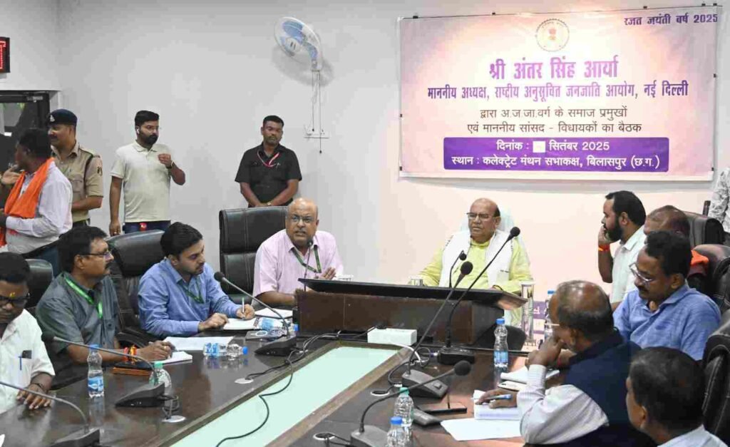 बिलासपुर:–केन्द्रीय अनुसूचित जनजाति आयोग के अध्यक्ष श्री अंतर सिंह आर्या ने आज यहां जिला कार्यालय के मंथन सभाकक्ष में आदिवासी समाज प्रमुखों की बैठक ली। लगभग दो घण्टे तक चली बैठक में उन्होंने इत्मीनान से उनकी एक-एक समस्याएं सुनी और इस संबंध में ज्ञापन भी लिए। श्री आर्या ने कहा कि बैठक में आज आदिवासी समाजों की ओर से महत्वपूर्ण सुझाव मिले हैं। ये सभी कानूनी एवं विभिन्न संवैधानिक मुद्दों से जुड़े हुए हैं। इन सभी को राष्ट्रपति और राज्यपाल के ध्यान में लाकर उनका सकारात्मक समाधान किया जायेगा। आयोग के वरिष्ठ अधिकारी एवं विशेषज्ञ भी इस दौरान उपस्थित थे।