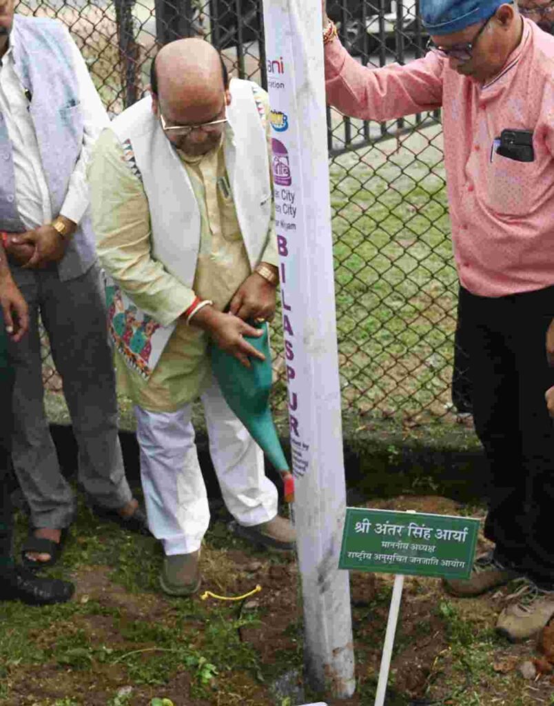 बिलासपुर:–बिलासपुर प्रवास पर पहंुचे राष्ट्रीय अनुसूचित जनजाति आयोग के अध्यक्ष श्री अंतर सिंह आर्या ने आज न्यू सर्किट हाउस परिसर में एक पेड़ मां के नाम अभियान के तहत वृक्षारोपण किया। उन्होंने परिसर में अन्य जन प्रतिनिधियों के साथ खम्हार, करंज आदि पौधे लगाये। श्री आर्या ने इन पौधों के संरक्षण के रख-रखाव की जिम्मेदारी नगर निगम को सौंपी।