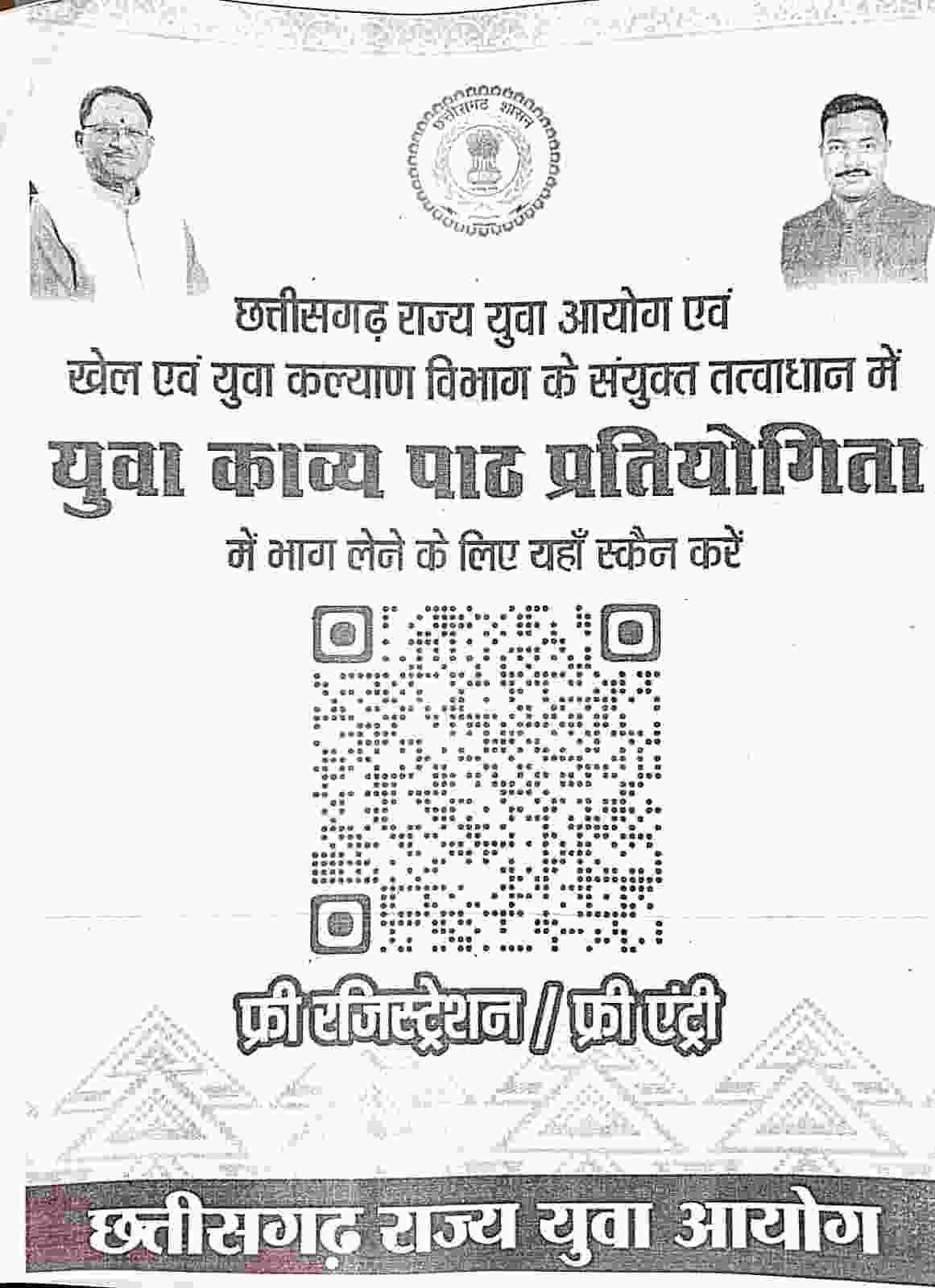 खेल एवं युवा कल्याण विभाग के सहायक संचालक ई एक्का ने बताया कि प्रतियोगिता में भाग लेने वाले युवाओं की आयु 15 से 29 वर्ष के मध्य होनी चाहिए। प्रतियोगिता में सम्मिलित होने के लिए गूगल फार्म में पंजीयन किया जाना अनिवार्य है, जिसका लिंक https://forms.gle/iAo2jLmMALENP4ee6है। प्रस्तुति का समय अधिकतम 5 मिनट का होगा। प्रतिभागी को केवल 1 कविता प्रस्तुत करने की अनुमति होगी। कविता हिन्दी अथवा छत्तीसगढ़ी भाषा में प्रस्तुत की जा सकेगी। कविता हिंसात्मक, अपराधिक, आपत्तिजनक तथा अनुचित ना हो। कविता में जाति, धर्म, नस्ल, रंग आदि का भेदभाव न हो। निर्णयन समिति का निर्णय अंतिम एवं बाध्यकारी होगा। कविता मौलिक अथवा किसी प्रसिद्ध कवि की रचना हो सकती है, लेकिन पूर्व प्रकाशित प्रसिद्ध कविता प्रस्तुत करने पर कवि का नाम अवश्य लेना होगा। उच्चारण, भाव-भंगिमा, शुद्धता, प्रस्तुति कला, भावानुकुलता एवं विषय की प्रासंगिकता के आधार पर प्रतिभागियों को अंक प्रदाय किया जाएगा।