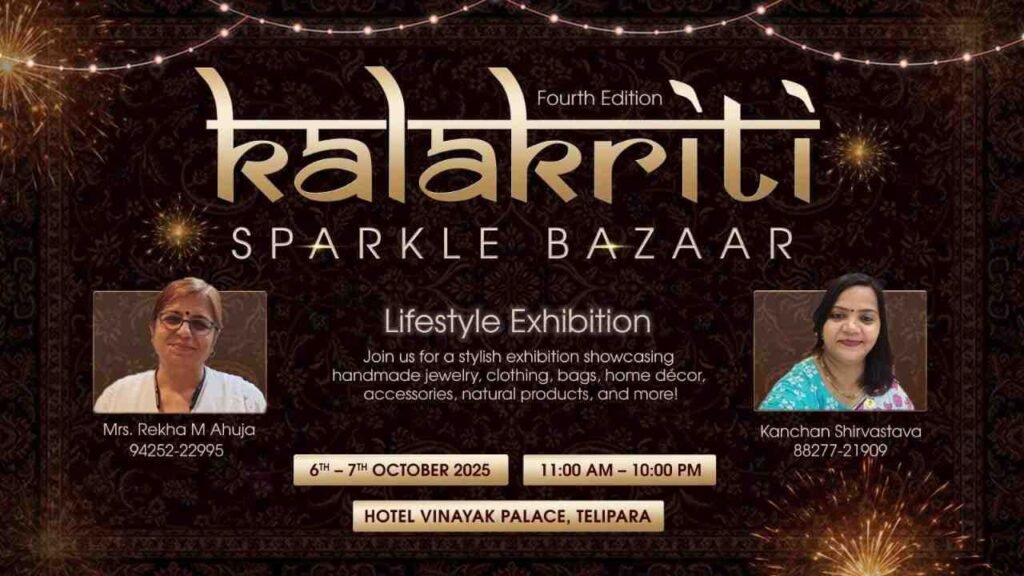 बिलासपुर:–शहरवासियों के लिए उत्सवों के बीच खरीदारी का सुनहरा अवसर लेकर “कलाकृति स्पार्कल बाजार” एक बार फिर आयोजित किया जा रहा है। यह विशेष दो दिवसीय आयोजन 6 और 7 अक्टूबर को होटल विनायक पैलेस, तेलीपारा (नियर अजीत होटल) में होगा।