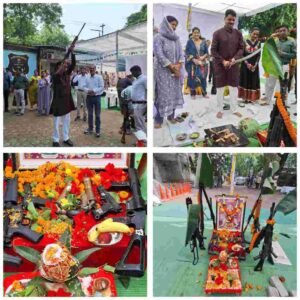 इस अवसर पर जिला में उपलब्ध आधुनिक हथियारों – पिस्टल, राइफल व अन्य अस्त्र-शस्त्रों की पूजा की गई। पूजा के पश्चात पुलिस जवानों ने परंपरा के अनुसार अवाजी फायरिंग कर देवी माँ को समर्पण किया।