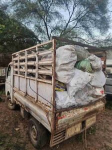घेराबंदी के दौरान सफेद रंग का छोटा हाथी वाहन क्रमांक CG 10 C 5074 को रोककर तलाशी ली गई। तलाशी में वाहन से करीब 1.5 क्विंटल पुराने स्टील के बर्तन, कढ़ाई एवं अन्य कबाड़ सामग्री (कीमती लगभग ₹51,000) बरामद की गई। वाहन की अनुमानित कीमत ₹30,000 बताई गई है। इस तरह जब्त कुल संपत्ति की कीमत लगभग ₹81,000 आंकी गई है।