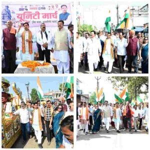 कोटा में यूनिटी मार्च का शुभारंभ राम मंदिर पड़ावपारा से हुआ,श्री राम मंदिर चौक पर यूनिटी मार्च के तहत आयोजित कार्यक्रम में केंद्रीय राज्य मंत्री श्री तोखन साहू ने कहा कि सरदार वल्लभभाई पटेल का जीवन देशभक्ति, दृढ़ संकल्प और कर्मनिष्ठा का उदाहरण है। उन्होंने अपने कूटनीतिक कौशल और अदम्य साहस से सभी रियासतों का विलय कर भारत की एकता की नींव रखी। आज का भारत उनके सपनों का साकार रूप है। प्रधानमंत्री श्री नरेंद्र मोदी के नेतृत्व में देश ‘विकसित भारत’ की दिशा में तेजी से आगे बढ़ रहा है। युवाओं को सरदार पटेल के जीवन मूल्य, अनुशासन और निस्वार्थ सेवा भाव को अपने जीवन में अपनाना चाहिए। उन्होंने कहा कि सरदार पटेल का समर्पण, दृढ़ता और निर्णय क्षमता आज भी भारत की एकता का प्रतीक है। इस अवसर पर केंद्रीय मंत्री ने स्वदेशी अपनाने और एकता का सभी को संकल्प दिलाया।