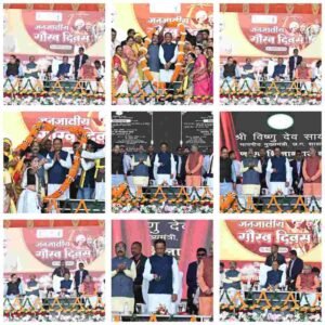 जनजातीय गौरव दिवस समारोह में शामिल मुख्यमंत्री श्री साय ने जनजातीय गौरव दिवस समारोह में भाग लिया और इस अवसर पर प्रदेश की जनजातीय परंपराओं तथा योगदान की सराहना की।संभागायुक्त के नए कार्यालय भवन का लोकार्पण उन्होंने कोनी स्थित संभागायुक्त के नए कार्यालय भवन का लोकार्पण किया। लगभग 12 करोड़ रुपए की लागत से निर्मित इस सर्वसुविधायुक्त भवन का निर्माण अरपा नदी के किनारे ढाई एकड़ क्षेत्र में किया गया है।