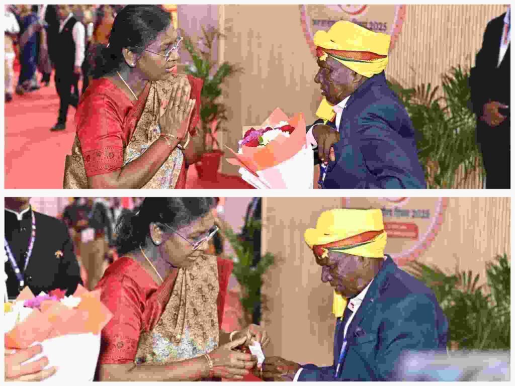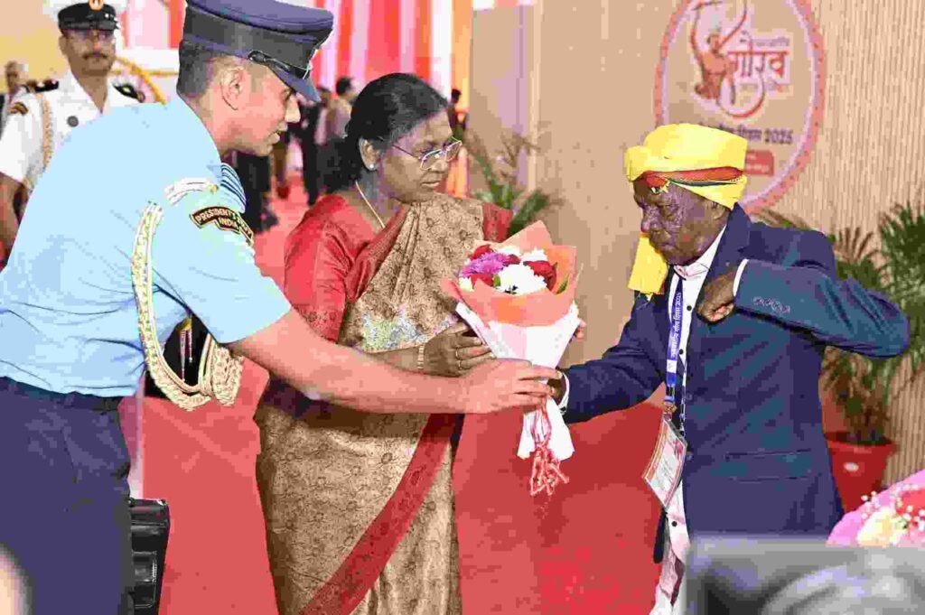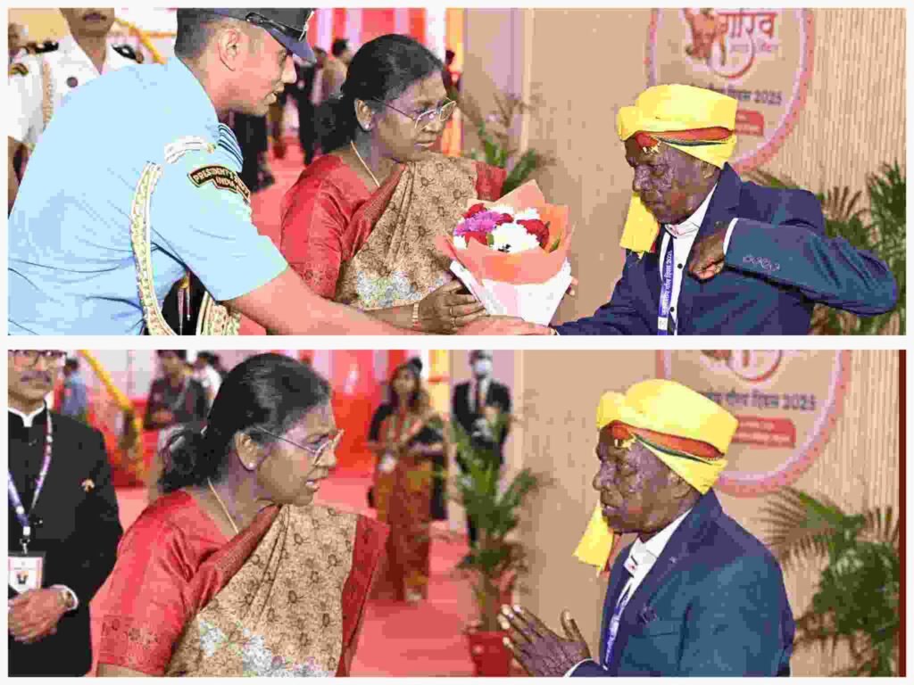 जनजातीय गौरव दिवस के राज्य स्तरीय कार्यक्रम में गुरुवार को एक ऐतिहासिक और भावुक क्षण देखने को मिला, जब राष्ट्रपति श्रीमती द्रौपदी मुर्मु ने पण्डो जनजाति के वरिष्ठ सदस्य बसन्त पण्डो से विशेष मुलाकात की। कार्यक्रम स्थल पर जब बसन्त पण्डो राष्ट्रपति मंच के समीप पहुँचे, तो राष्ट्रपति मुर्मु ने अत्यंत आत्मीयता के साथ उनका कुशल-क्षेम जाना, उन्हें पास बुलाया और स्नेहपूर्वक शॉल ओढ़ाकर सम्मानित किया।