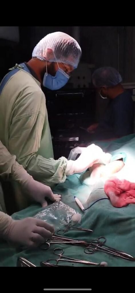 स्थिति की गंभीरता को देखते हुए डॉ. ओ.पी. राज एवं डॉ. बी.डी. तिवारी ने ऑपरेशन का निर्णय लिया। परंतु ऑपरेशन के दौरान चीरफाड़ को न्यूनतम रखने और तारों की सटीक जगह जानने के लिए रेडियोलॉजी विभाग की मदद ली गई। विभागाध्यक्ष डॉ. अर्चना सिंह के निर्देशन में असिस्टेंट प्रोफेसर डॉ. अमन अग्रवाल ने ऑपरेशन थिएटर में ही लाइव सोनोग्राफी के माध्यम से लोहे के तारों की सटीक स्थिति चिन्हित की। इसके आधार पर सर्जनों ने बहुत ही कम चीरफाड़ कर सफलतापूर्वक सभी चारो तारों को निकाल दिया गाया मेल सर्जरी वर्ड मे इलाज जारी है।