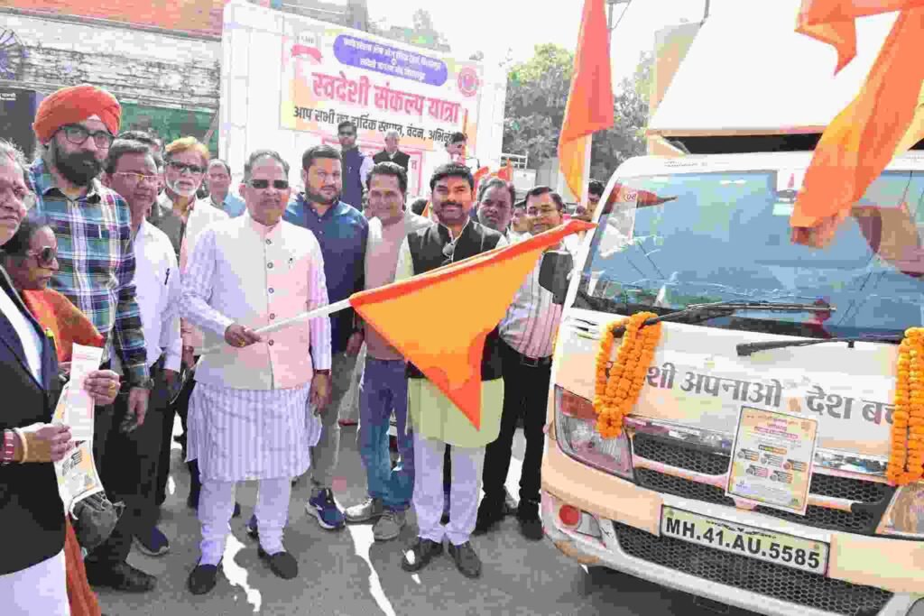 बिलासपुर:–कन्फेडरेशन ऑफ ऑल इंडिया ट्रेडर्स (कैट) एवं स्वदेशी जागरण मंच के संयुक्त तत्वावधान में देशभर में भ्रमण कर रही स्वदेशी संकल्प रथ यात्रा का भव्य स्वागत बिलासपुर के देवकीनंदन चौक में किया गया। इस अवसर पर पूर्व मंत्री एवं विधायक श्री अमर अग्रवाल ने रथ यात्रा को हरी झंडी दिखाकर नगर भ्रमण हेतु रवाना किया।