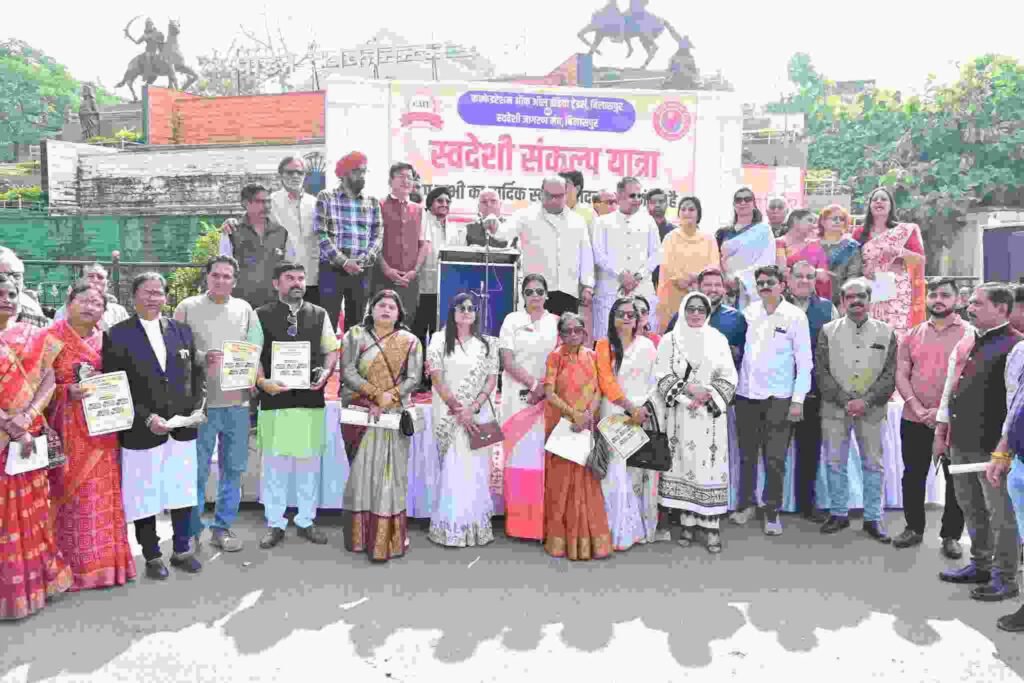 कार्यक्रम का संचालन कैट बिलासपुर महामंत्री हीरानंद जयसिंह ने किया। महापौर श्रीमती पूजा विधानी ने उपस्थित सभी नागरिकों को स्वदेशी अपनाने की शपथ दिलाई।