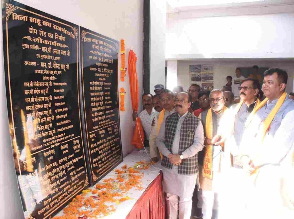 रायपुर:–छत्तीसगढ़ के उप मुख्यमंत्री श्री अरूण साव आज राजनांदगांव स्थित साहू सदन में आयोजित साहू समाज के राज्य स्तरीय युवक-युवती परिचय सम्मेलन एवं शपथ ग्रहण समारोह कार्यक्रम में शामिल हुए। इस अवसर पर उन्होंने साहू सदन परिसर में मां कर्मा मंदिर के जीर्णोद्धार कार्य एवं डोम शेड का विधिवत लोकार्पण किया।