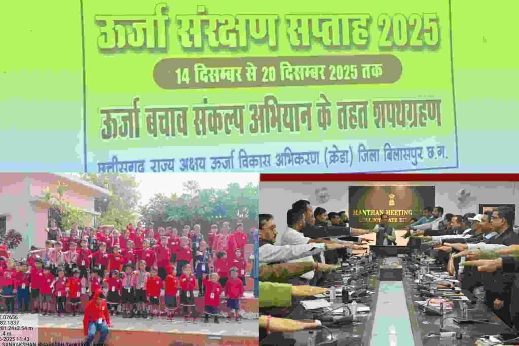 बिलासपुर:–ऊर्जा संरक्षण को प्रोत्साहित करने के उद्देश्य से जिले में 14 से 20 दिसम्बर 2025 तक ऊर्जा संरक्षण सप्ताह मनाया जा रहा है। इस अवसर पर ऊर्जा संरक्षण को जन-आंदोलन बनाने के लिए जिलेभर में संकल्प एवं जागरूकता अभियान संचालित किया जा रहा है।