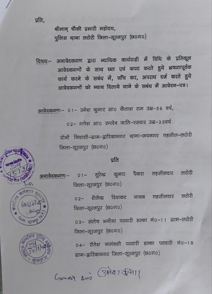 कलेक्टर, एसपी और आईजी से शिकायत – BNS 257 व 318 में कार्रवाई की मांग
