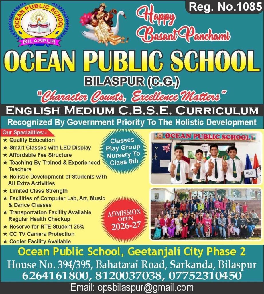 वसंत पंचमी के पावन अवसर पर ओशियन पब्लिक स्कूल परिसर में सरस्वती पूजा एवं मातृ-पितृ पूजन का भव्य आयोजन किया गया। इस अवसर पर शिक्षिकाओं, विद्यार्थियों, अभिभावकों तथा वेदान्ता सेवा समिति के सदस्यों ने माँ सरस्वती की विधिवत पूजा-अर्चना कर ज्ञान, बुद्धि एवं सफलता का आशीर्वाद प्राप्त किया।