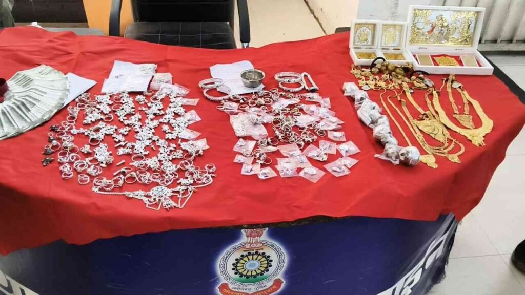 рдЧрд┐рд░рдлреНрддрд╛рд░ рдЖрд░реЛрдкрд┐рдпреЛрдВ рдХреЗ рдкрд╛рд╕ рд╕реЗ рдЪреЛрд░реА рдХрд┐рдП рдЧрдП рд╕реЛрдиреЗ-рдЪрд╛рдВрджреА рдХреЗ рдЖрднреВрд╖рдг, рдЬрд┐рдирдХреА рдЕрдиреБрдорд╛рдирд┐рдд рдХреАрдордд рд▓рдЧрднрдЧ 4 рд▓рд╛рдЦ 24 рд╣рдЬрд╛рд░ рд░реБрдкрдпреЗ, рддрдерд╛ 26 рд╣рдЬрд╛рд░ рд░реБрдкрдпреЗ рдирдХрдж рдмрд░рд╛рдордж рдХрд┐рдП рдЧрдП рд╣реИрдВред рдкреБрд▓рд┐рд╕ рдХреЗ рдЕрдиреБрд╕рд╛рд░ рдЖрд░реЛрдкреА рд╢рд╛рддрд┐рд░ рдкреНрд░рд╡реГрддреНрддрд┐ рдХреЗ рд╣реИрдВ рдФрд░ рд╕реБрдирд┐рдпреЛрдЬрд┐рдд рддрд░реАрдХреЗ рд╕реЗ рдЕрд▓рдЧ-рдЕрд▓рдЧ рдЗрд▓рд╛рдХреЛрдВ рдореЗрдВ рдЪреЛрд░реА рдХреА рд╡рд╛рд░рджрд╛рддреЛрдВ рдХреЛ рдЕрдВрдЬрд╛рдо рджреЗрддреЗ рдереЗред