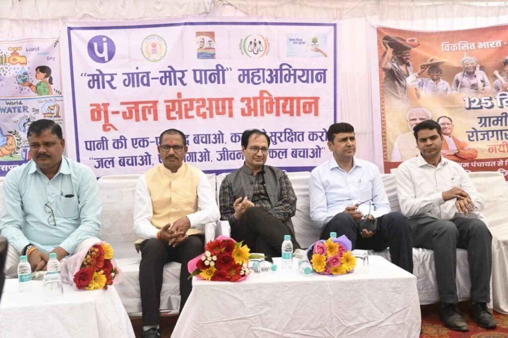 कलेक्टर श्री अग्रवाल ने अपने संबोधन में कहा कि जल जीवन का आधार है, लेकिन लगातार दोहन के कारण भू-जल स्तर में चिंताजनक गिरावट आई है। यदि अभी जल संरक्षण पर गंभीरता से कार्य नहीं किया गया, तो आने वाली पीढ़ियों को गंभीर जल संकट का सामना करना पड़ेगा। उन्होंने वर्षा जल संचयन, जल-स्रोतों के संरक्षण और फसल विविधिकरण को अपनाने पर जोर देते हुए कहा कि वैकल्पिक खेती से पानी की बचत संभव है। उन्होंने ग्रामीणों से ‘मोर गांव मोर पानी’ अभियान को जन-आंदोलन बनाने का आह्वान किया।