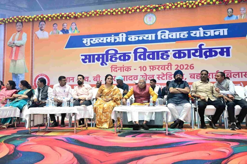 जिला स्तरीय कार्यक्रम का आयोजन स्वर्गीय बी.आर. यादव बहतराई स्टेडियम, बिलासपुर में किया गया, जहां 175 पात्र जोड़ों का पारंपरिक रीति-रिवाजों के साथ विवाह संपन्न कराया गया। समारोह में विधायक श्री धरमलाल कौशिक, श्री दिलीप लहरिया, श्री अटल श्रीवास्तव सहित अन्य जनप्रतिनिधियों ने नव दंपत्तियों को शुभकामनाएं दीं।