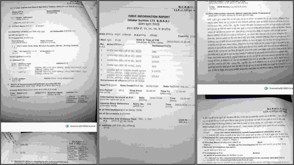 मामले में कोतवाली थाना, अंबिकापुर में अपराध क्रमांक 0128/2026 दर्ज किया गया है। पुलिस ने भारतीय न्याय संहिता (BNS), 2023 की विभिन्न धाराओं तथा अनुसूचित जाति एवं अनुसूचित जनजाति (अत्याचार निवारण) अधिनियम की धाराओं के तहत प्रकरण कायम किया है। बावजूद इसके, समाचार लिखे जाने तक किसी भी नामजद आरोपी की गिरफ्तारी नहीं हुई है।