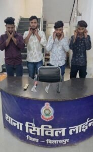 बिलासपुर:शहर के मिनीबस्ती, जरहाभाठा क्षेत्र में धारदार हथियारों के साथ लोगों को डराने-धमकाने वाले युवकों पर सिविल लाइन पुलिस ने सख्त कार्रवाई की है। पुलिस ने मौके से 4 युवकों को गिरफ्तार कर आर्म्स एक्ट के तहत मामला दर्ज किया है, वहीं एक अन्य व्यक्ति पर प्रतिबंधात्मक कार्रवाई की गई है।