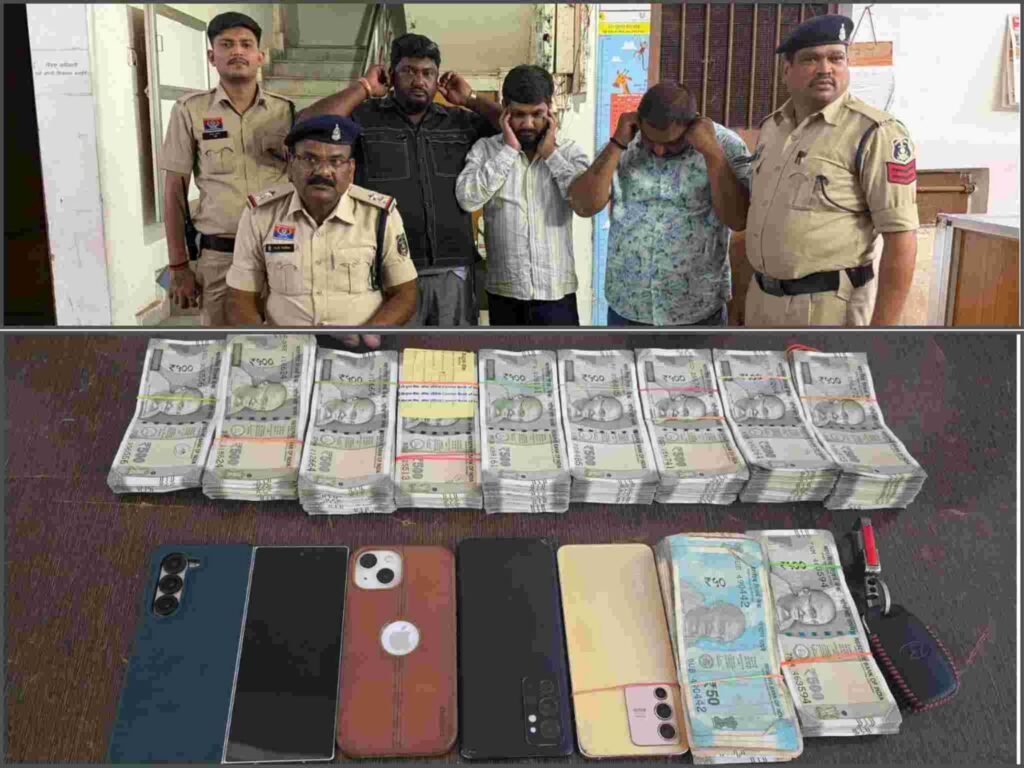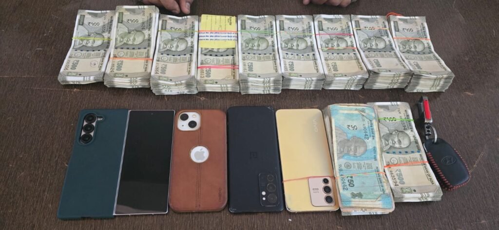 पुलिस ने आरोपियों के कब्जे से ₹5,01,300 नगद, 4 मोबाइल फोन और एक क्रेटा कार जब्त की है। जब्त सामग्री की कुल कीमत लगभग ₹17 लाख आंकी गई है।