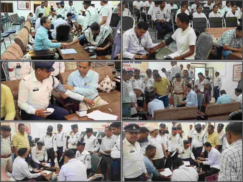 वरिष्ठ पुलिस अधीक्षक श्री रजनेश सिंह के मार्गदर्शन एवं अतिरिक्त पुलिस अधीक्षक (ट्रैफिक) रामगोपाल करियारे के पर्यवेक्षण में आयोजित इस शिविर का उद्देश्य लगातार ड्यूटी में तैनात पुलिस जवानों के शारीरिक एवं मानसिक स्वास्थ्य का ध्यान रखना रहा। यातायात पुलिस के जवान धूल, धूप, बारिश और प्रदूषण जैसी कठिन परिस्थितियों में 24×7 ड्यूटी निभाते हैं, जिसे देखते हुए यह पहल की गई।