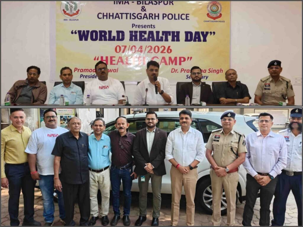 बिलासपुर:विश्व स्वास्थ्य दिवस के अवसर पर यातायात पुलिस बिलासपुर द्वारा पुलिस लाइन स्थित चेतना भवन में एक विशाल निःशुल्क स्वास्थ्य एवं चिकित्सा शिविर का आयोजन किया गया। यह शिविर प्रातः 6:00 बजे से प्रारंभ हुआ, जिसमें 300 से अधिक पुलिस अधिकारियों एवं कर्मचारियों ने अपने स्वास्थ्य का परीक्षण कराया।