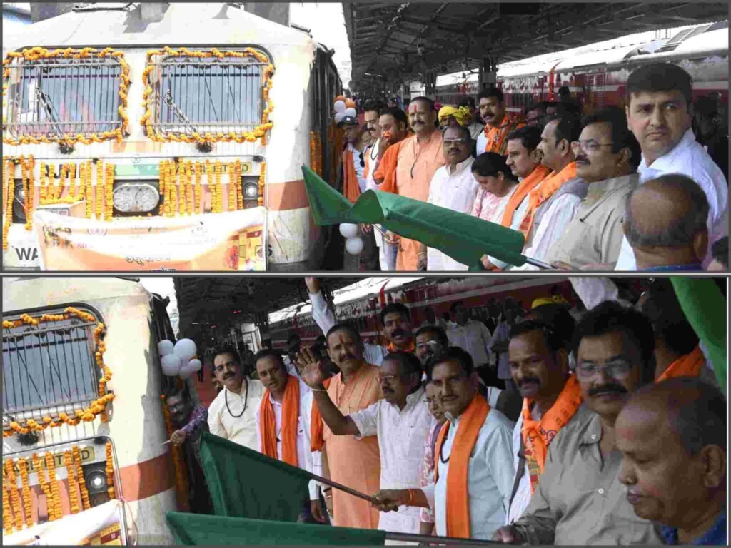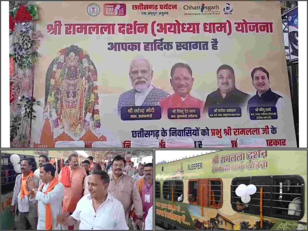 बिलासपुर। श्री रामलला दर्शन योजना के तहत आज बिलासपुर रेलवे स्टेशन से आस्था स्पेशल ट्रेन 850 श्रद्धालुओं को लेकर अयोध्या धाम के लिए रवाना हुई। केंद्रीय राज्य मंत्री तोखन साहू ने हरी झंडी दिखाकर ट्रेन को रवाना किया। इस अवसर पर जनप्रतिनिधि, रेलवे अधिकारी एवं बड़ी संख्या में श्रद्धालु मौजूद रहे।