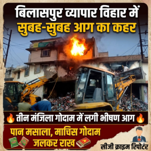 बिलासपुर के सबसे बड़े व्यापारिक क्षेत्र व्यापार विहार में गुरुवार तड़के सुबह उस समय हड़कंप मच गया, जब एक तीन मंजिला गोदाम में भीषण आग लग गई।