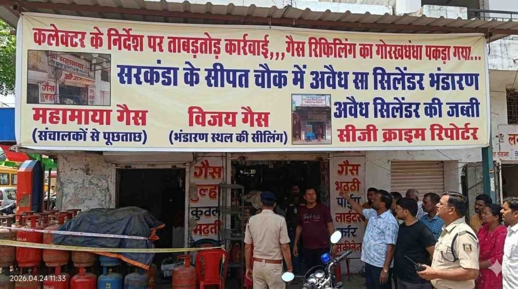 बिलासपुर:कलेक्टर संजय अग्रवाल के निर्देश पर शुक्रवार सुबह सरकंडा क्षेत्र के सीपत चौक में अवैध गैस सिलेंडर भंडारण और रिफिलिंग के खिलाफ जिला प्रशासन ने बड़ी छापामार कार्रवाई की। खाद्य नियंत्रक अमृत कुजूर के मार्गदर्शन में एएफओ अजय मौर्य और विनीता दास के नेतृत्व में टीम ने संयुक्त रूप से कार्रवाई करते हुए एक बड़े अवैध कारोबार का पर्दाफाश किया।