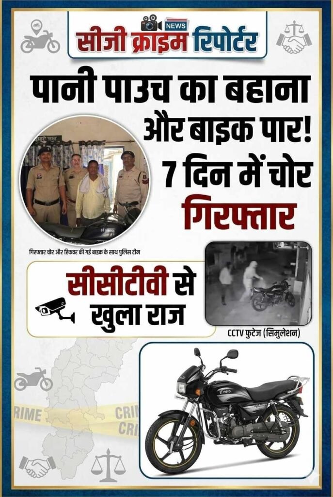 बिलासपुर/मस्तूरी। थाना मस्तूरी चौकी मल्हार पुलिस ने महज 7 दिनों के भीतर मोटरसाइकिल चोरी के मामले का खुलासा करते हुए आरोपी को गिरफ्तार कर लिया है। आरोपी ने बड़ी चालाकी से लिफ्ट लेने के बाद “पानी पाउच” का बहाना बनाकर प्रार्थी की बाइक पार कर दी थी।